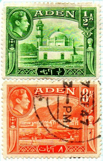 There are another two stamps of different denominations showing the Mosque and the port of Mukalla.
